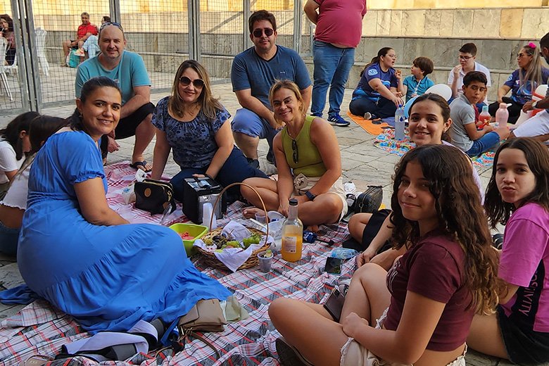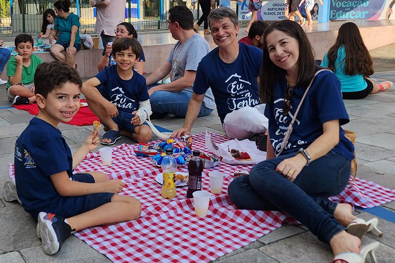 Ao chegar no Colégio, aconteceu a “benção das famílias”, realizada pelo Pe. Rodolfo Lucena – capelão da Instituição, e o piquenique, num momento de integração, alegria e louvor.